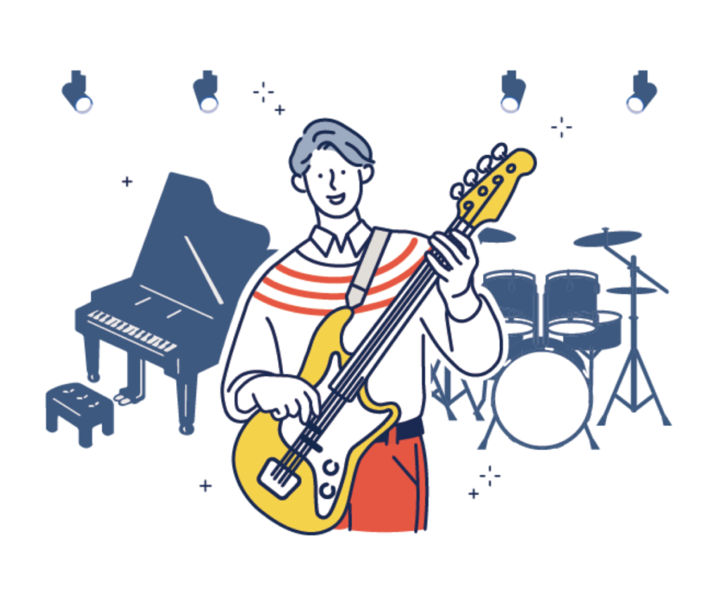 『本物のベーシスト』を育てる『正しい指導』と、『同じ目標を持つ仲間』が集う『サークル』の2つの効果で、最短距離の上達を目指すベーススクールです。